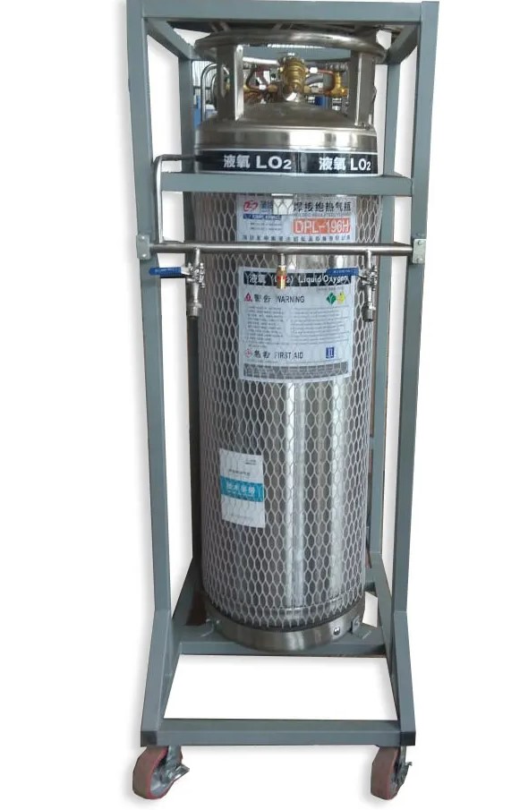 Вертикальный газификатор с дополнительным внешним продукционным испарителем, предназначен для работы с кислородом, азотом, аргоном, углекислотой.Состоит из сосуда и испарителя, смонтированных в единой раме, на колесах, а также рампой выдачи на несколько постов.
