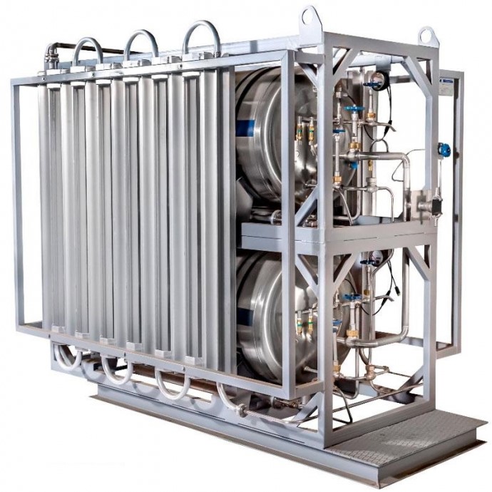 Состоит из двух сосудов объединенных в единой раме, с общим узлом заправки и рампой выдачи на несколько постов.