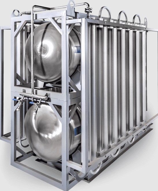 Состоит из двух сосудов объединенных в единой раме, с общим узлом заправки и рампой выдачи на несколько постов.