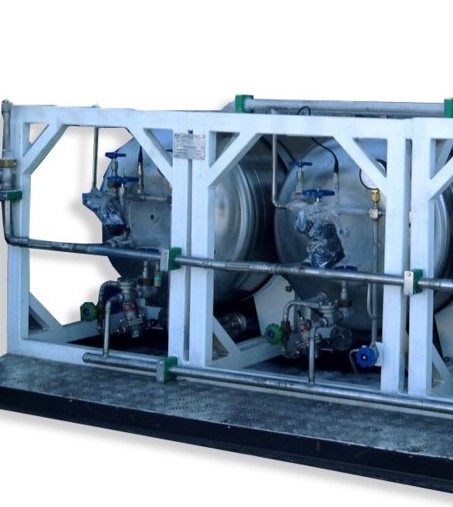 Состоит из трех сосудов объединенных в единой раме, с общим узлом заправки и рампой выдачи на несколько постов.
