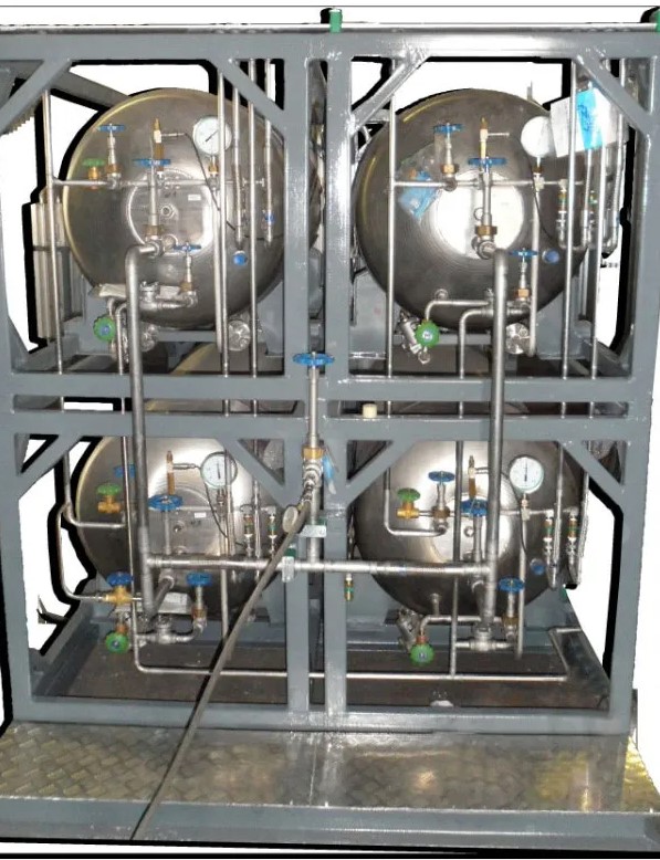 Состоит из четырех сосудов объединенных в единой раме, с общим узлом заправки и рампой выдачи на несколько постов.