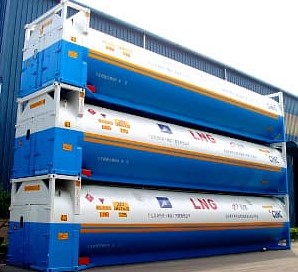 Криогенный ISO контейнер для транспортировки СПГ. Материал внешнего кожуха — сталь.