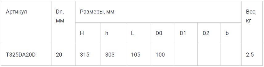 - Диаметр Dn, мм: 20