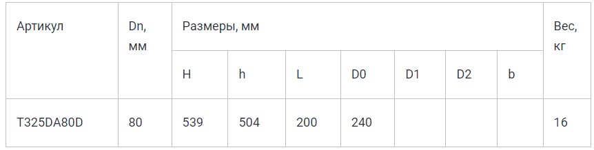 | Диаметр Dn, мм | 80 |